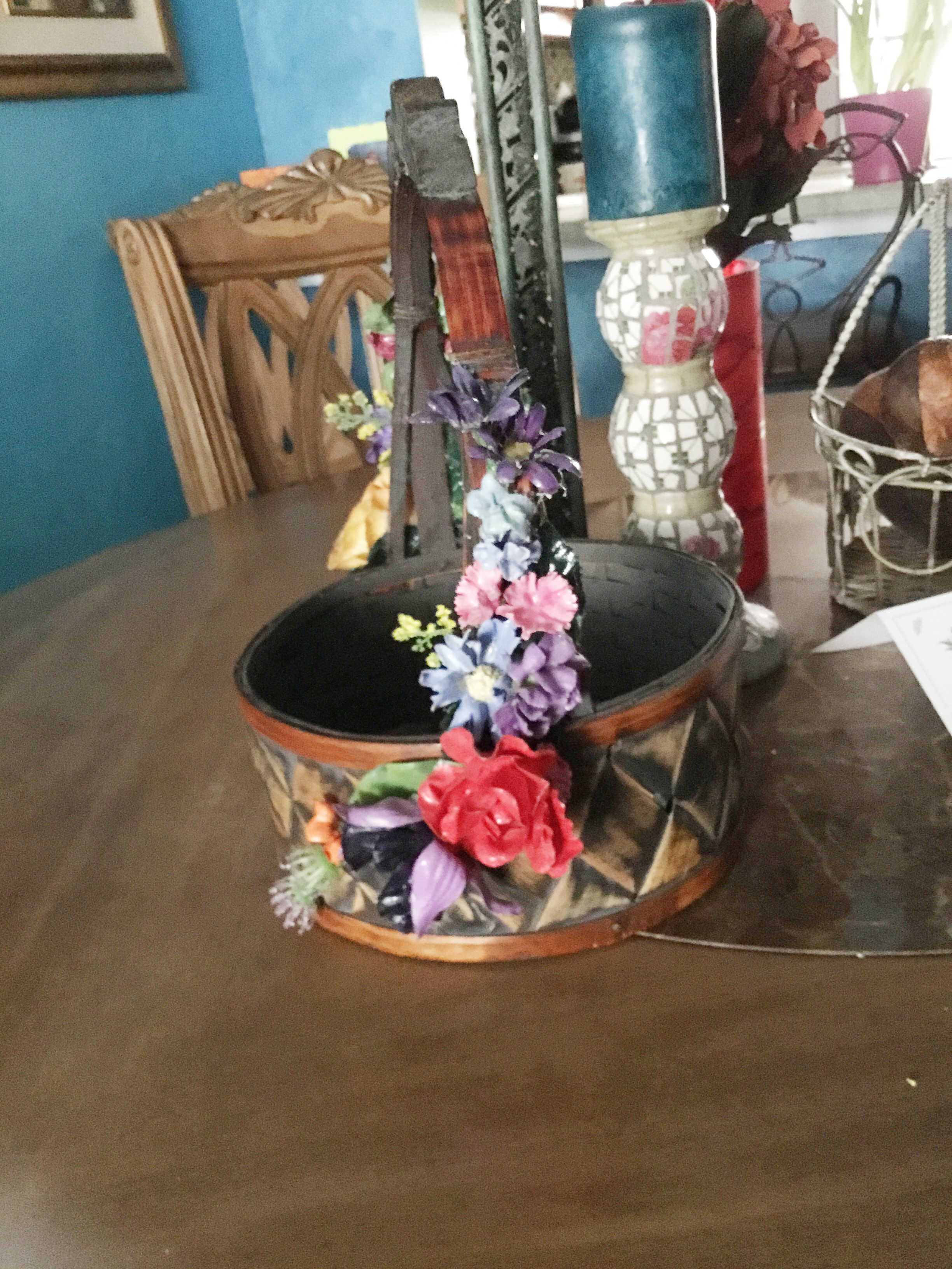 Size – Average BasketChristmas Basket: White and Red Poinsettias Painted Silk Flowers
